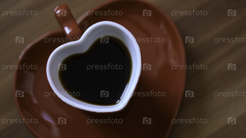 Мужчина, пьющий чашку кофе в форме сердца.Концепция.Прекрасная кружка с формой сердца и кофе.Романтическая кружка с тарелкой в форме сердца и утренним кофе