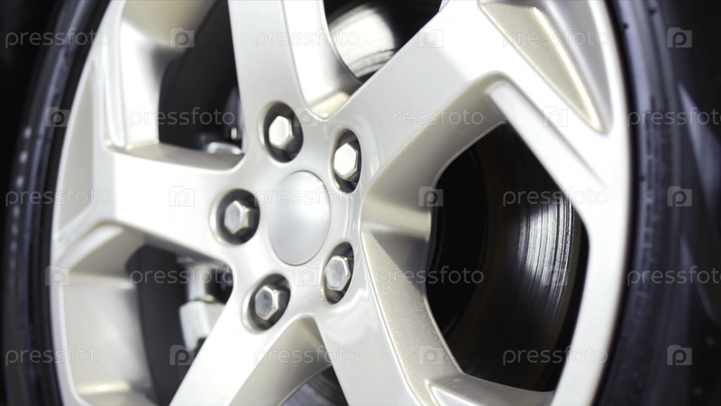 Автомобильное колесо на автомобиле крупный план. запас. диск тюнинга колеса. автомобильное колесо близкий план