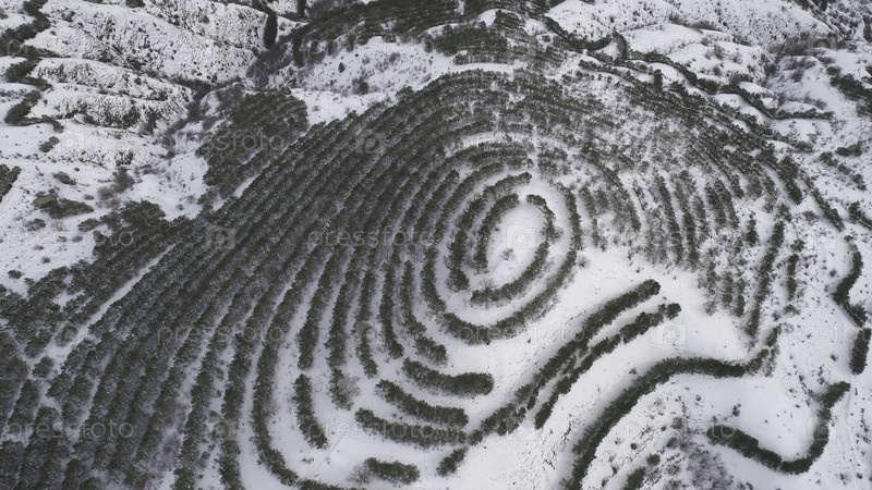 Вид с вершины города в высокогорье зимой.Снимок.Прекрасный пейзаж