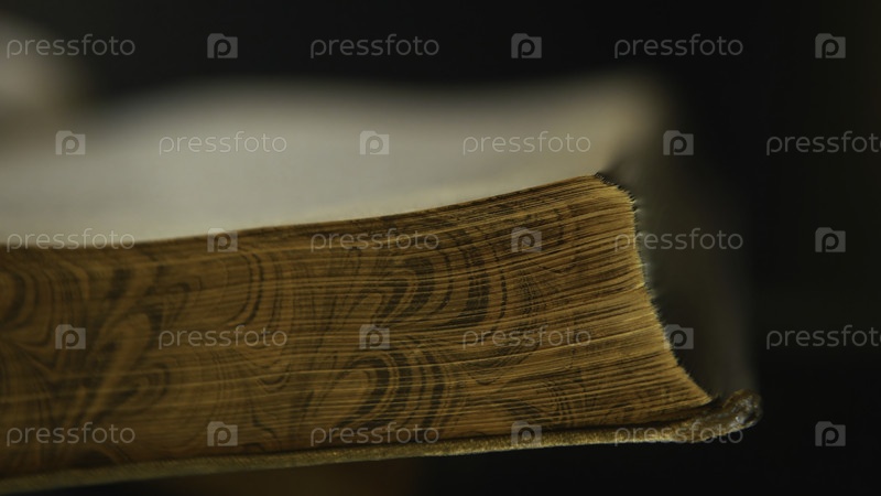 Близкий план неизвестного человека, держащего в руках открытую старую книгу и переворачивающего страницы