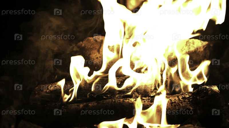 Сжигание древесины на костре. Лагерный огонь ночью. Огневые пламени. Лесные пожары близко друг к другу