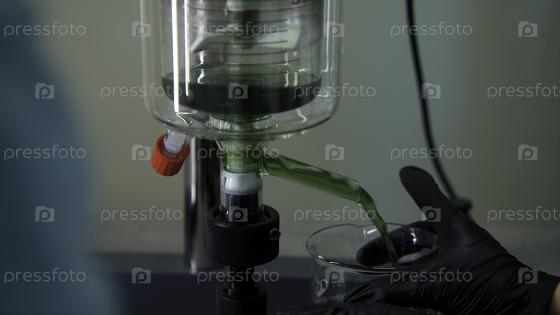 Химический процесс. Файловые кадры. Работа с зелеными химическими элементами, которые заливаются в различные пробирки. Высококачественная запись 4k