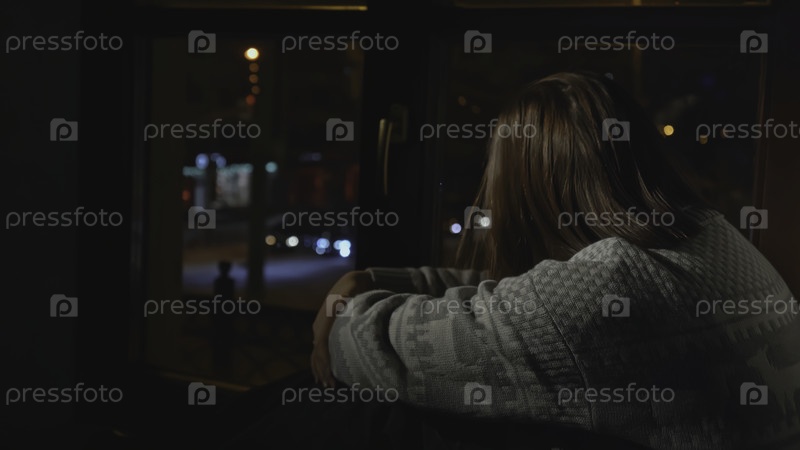 Женщина с депрессией смотрит в окно дома.СМИ.Женщина с тревожным расстройством сидит на лошади и грустна.Женщина в свитере сидит одна на окне