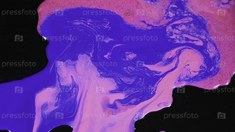 Красивое смешение голубого и розового цветов. Скриншоты. Художественный фон с смешиванием в потоке ярких цветов на черной поверхности. Флюидное искусство