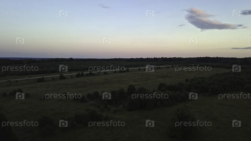 Вид с воздуха на зеленый лес и пустую дорогу.Клип.Осенний естественный фон