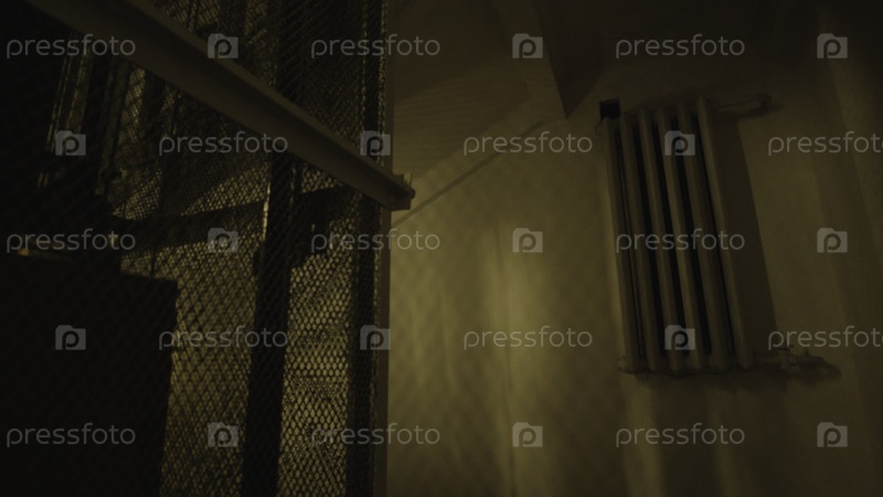 Старый лифт переезжает в дом. Стоковые кадры. Старый лифт эксплуатируется в жилом здании. Красивый вход в старый дом с движущимся винтажным лифтом