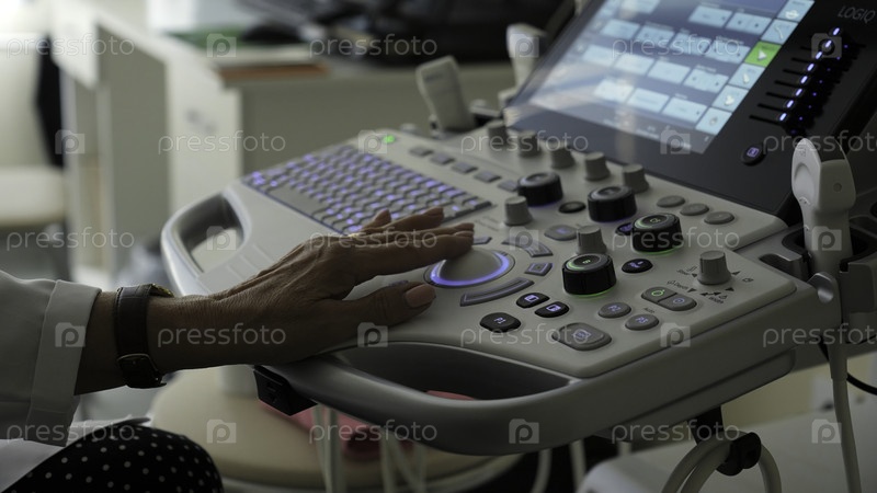 Сербия, Белград - 13 сентября 2023 года: женщина-врач проводит медицинское обследование с помощью ультразвукового сканера