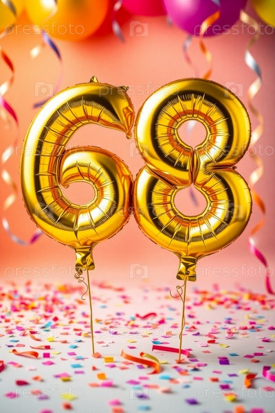 Гелий день рождения воздушный шар номер шестьдесят восемь, фигура золотой буквы 68 праздник праздничный фон