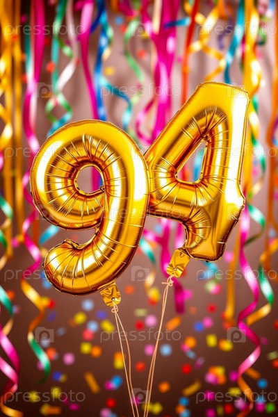 Гелий день рождения воздушный шар формы номер девяносто четыре, золотые буквы фигура 94 праздник праздничный фон декор