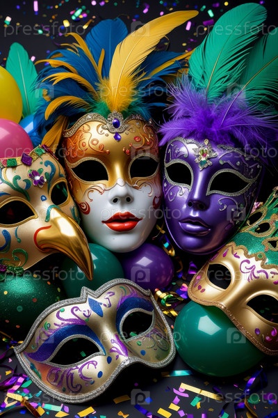 Красочные карнавальные маски, праздничная традиция Марди-Грас Фестиваль парад Фон ИИ генеративный
