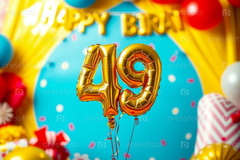 Гелий день рождения воздушный шар номер сорок девять, золотые буквы фигура 49 праздник праздничный фон