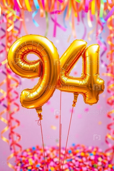 Гелий день рождения воздушный шар формы номер девяносто четыре, золотые буквы фигура 94 праздник праздничный фон декор
