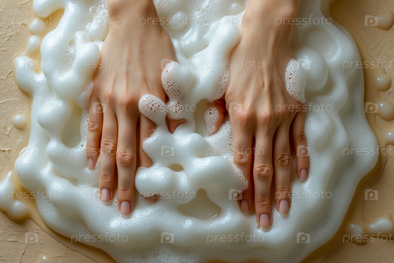 AI Generative Женщина, моющаяся с мылом из штанги натуральный органический ароматический косметический косметический пена ручной работы