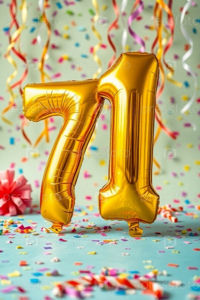 Гелиевый баллон на день рождения номер семьдесят один, фигура из золотых букв 71 праздник праздничный фон