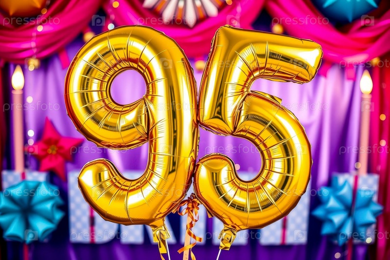 Гелий день рождения воздушный шар формы номер девяносто пять, золотые буквы фигура 95 праздник праздничный фон декор
