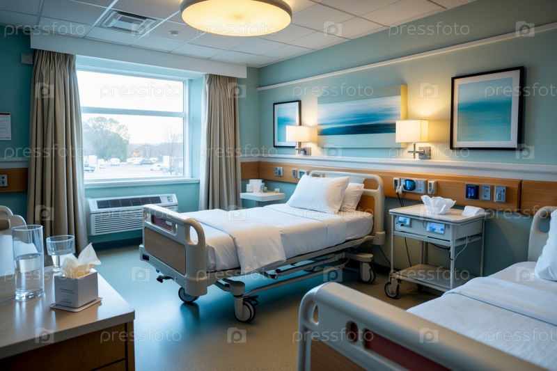 Внутренняя яркая больничная комната медицинская клиника, операция по выздоровлению в здравоохранении или болезни AI Generative
