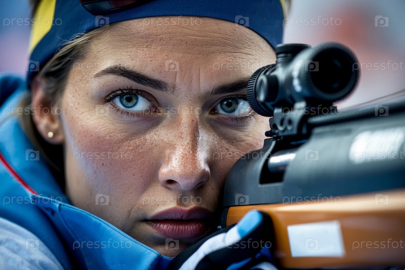 AI генеративная женщина спортсменка биатлонщица стрельба по цели винтовки