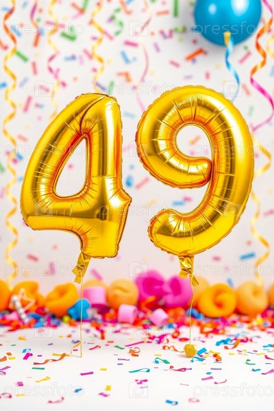 Гелий день рождения воздушный шар номер сорок девять, золотые буквы фигура 49 праздник праздничный фон