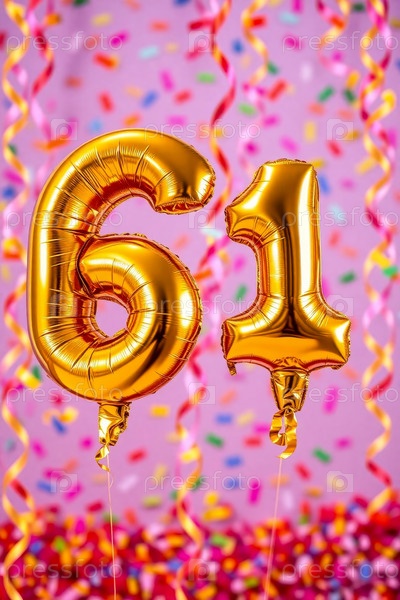 Гелийный баллон на день рождения номер шестьдесят один, фигура из золотых букв 61 праздник праздничный фон