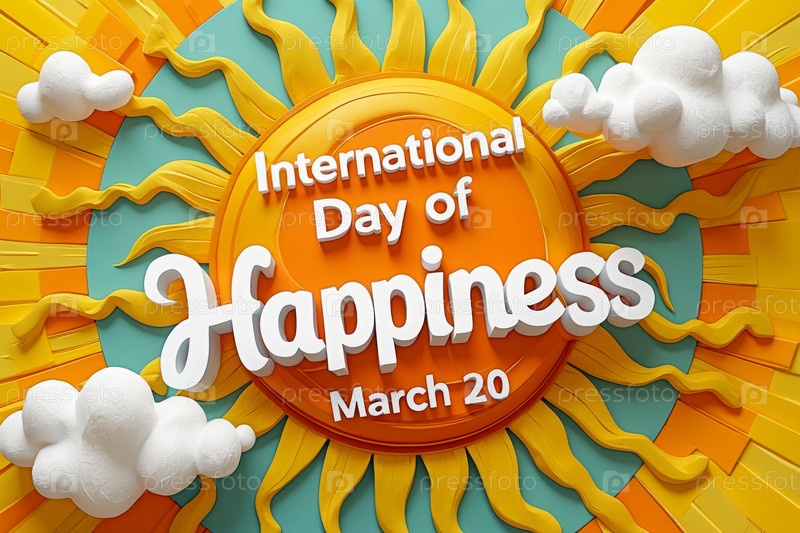 Привет Международный день счастья, Счастливый смешной улыбающийся человек Друзья Семейная ИИ генератор