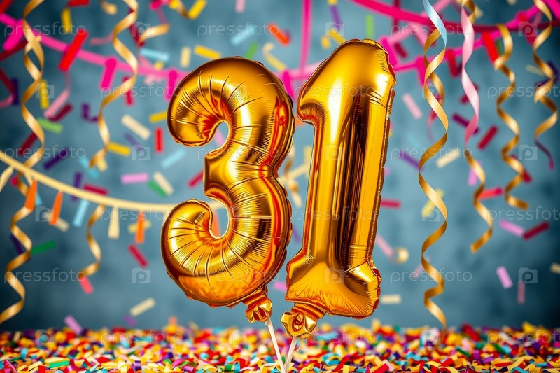 Гелий день рождения воздушный шар формы номер тридцать один, золотые буквы фигура 31 праздник праздничный фон декор