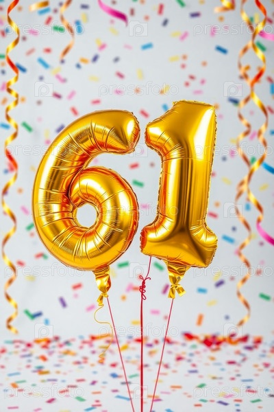 Гелийный баллон на день рождения номер шестьдесят один, фигура из золотых букв 61 праздник праздничный фон