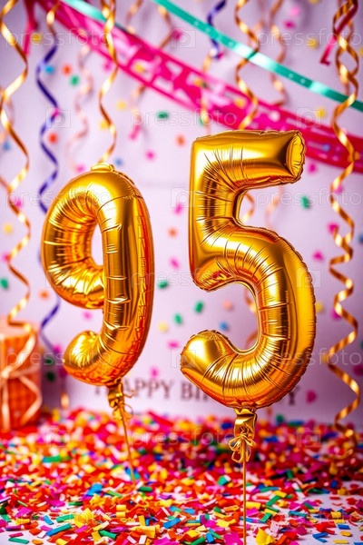 Гелий день рождения воздушный шар формы номер девяносто пять, золотые буквы фигура 95 праздник праздничный фон декор