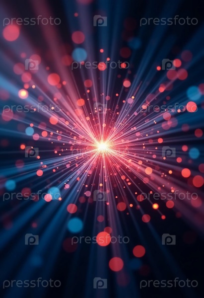 Вихревые точки красного и синего излучаются наружу в увлекательном космическом взрыве, смешивая тепло и холод в завораживающий визуальный опыт, который приглашает к удивлению и исследованию Генеративный ИИ