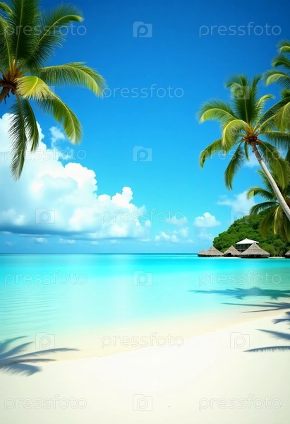 Спокойный пляж предлагает захватывающие виды с качающимися пальмами и бирюзовой водой под блестящим голубым небом, приглашая к релаксации и исследованию Generative AI