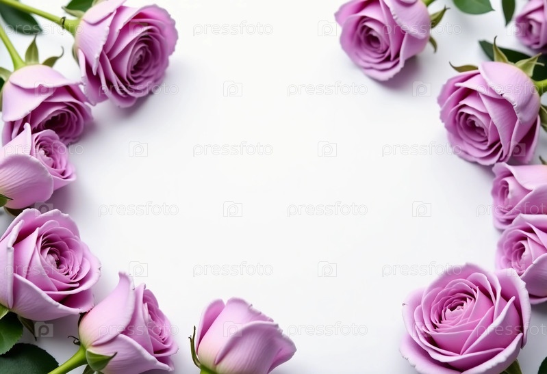 Лавандовые розы с мягкими листочками искусственно помещены в круговое расположение, создавая красивую раму для личных сообщений или сердечных замечаний, идеально подходящую для празднований Generative AI