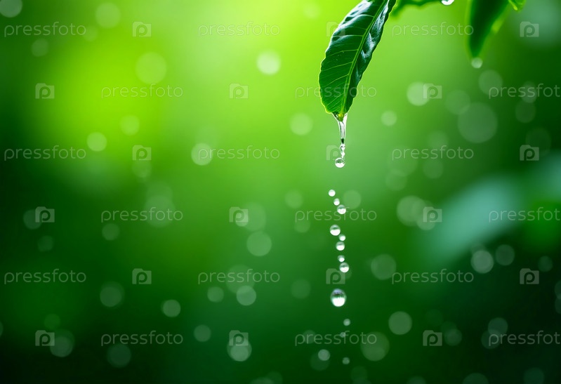 Капли дождя цепляются за лист, прежде чем выпадают в мягкую зеленую листву ниже.Солнечный свет проникает сквозь него, создавая безмятежную атмосферу жизни и спокойствия