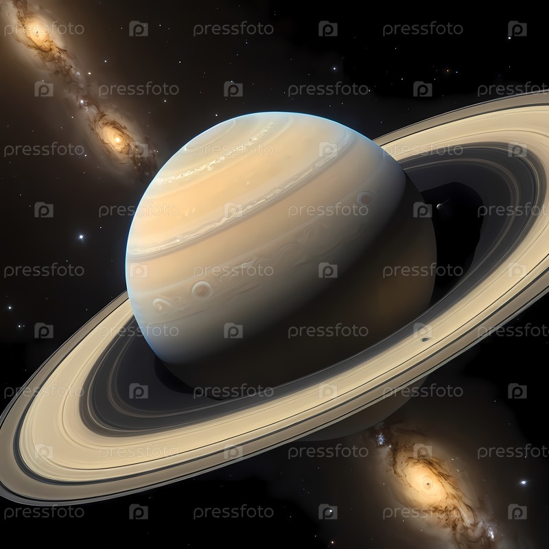 Потрясающий вид Сатурна, демонстрирующего свои великолепные кольца на фоне мерцающих галактик.Этот небесный дисплей захватывает величие космоса в сумерках Generative AI