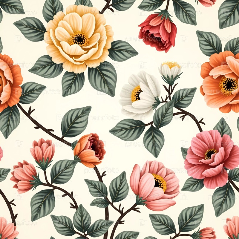 Мягкие оттенки переплетаются, когда массив цветущих цветов демонстрирует оранжевые, розовые и белые листочки на пышных зеленых листьях, вызывая спокойную и яркую атмосферу сада Generative AI