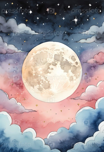 Водяное изображение лунного ночного неба с мечтательными облаками и мерцающими звездами для художественного вдохновения и украшения Generative AI