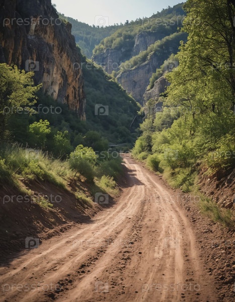 Спокойная грунтовая дорога извивается сквозь яркие зеленые холмы, расположенные между возвышающимися скалистыми утесами, приглашая к исследованию в солнечный день.Природа процветает в этой мирной обстановке