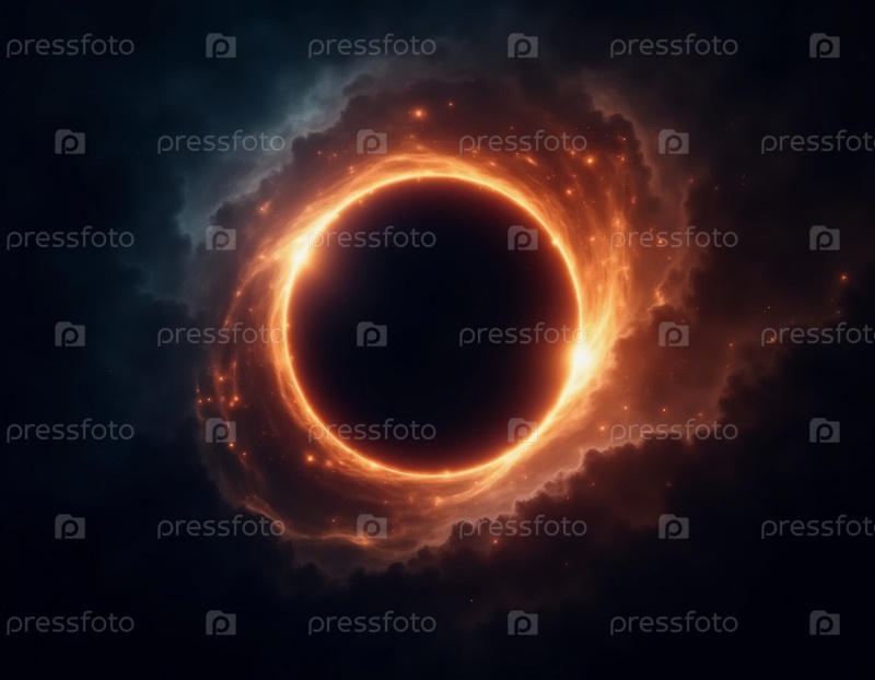 Излучающее затмение захватывает зрителя, создавая яркий контраст с глубокой черной пустотой.Огненные края освещают космические облака, демонстрируя красоту Вселенной