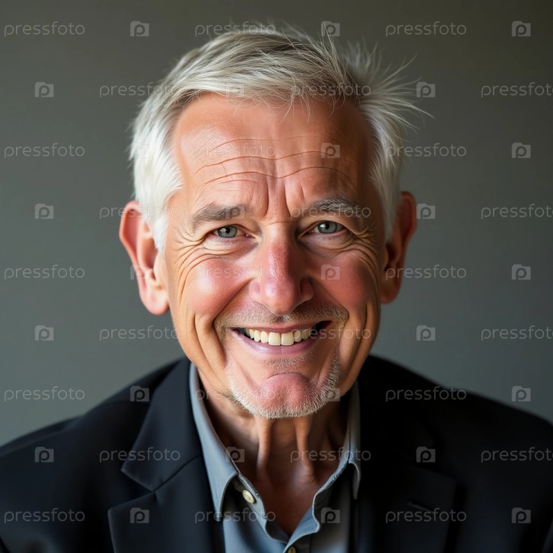 Веселый пожилой человек с серебристыми волосами излучает тепло, широко улыбается и демонстрирует свой жизнерадостный дух Generative AI