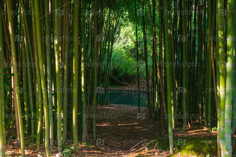 Путь к реке в тропической бамбуковой роще