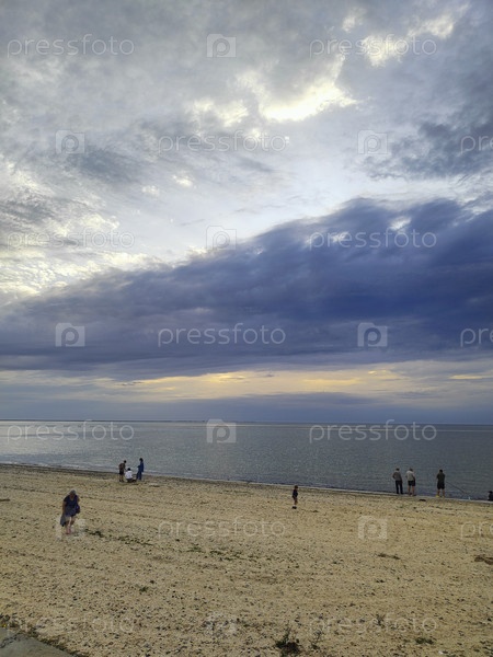 Песчаный пляж с облачным небом, тихий береговой фон, обои прибрежного пляжа