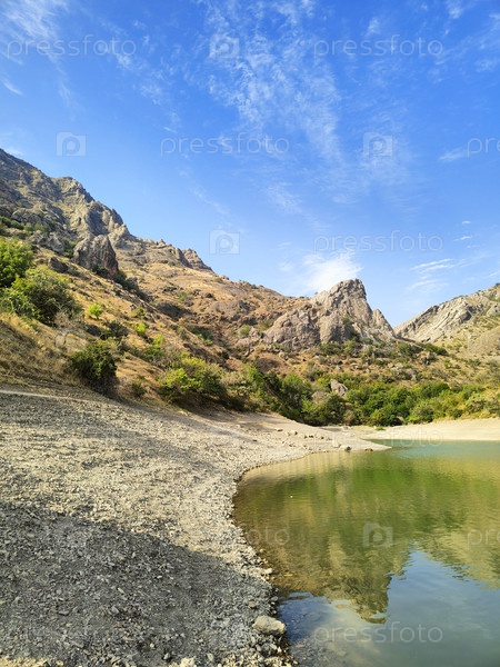 Скалистые горные берега озера с отражением, живописный фон природы, мирная гора обои