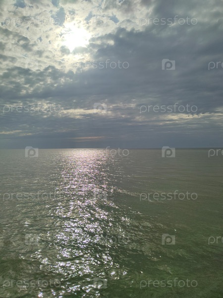 Драматическое облачное небо над спокойным морем, тихий фон воды, мирный океан обои