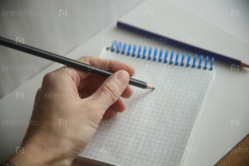 Рука человека пишет карандашом в блокноте
