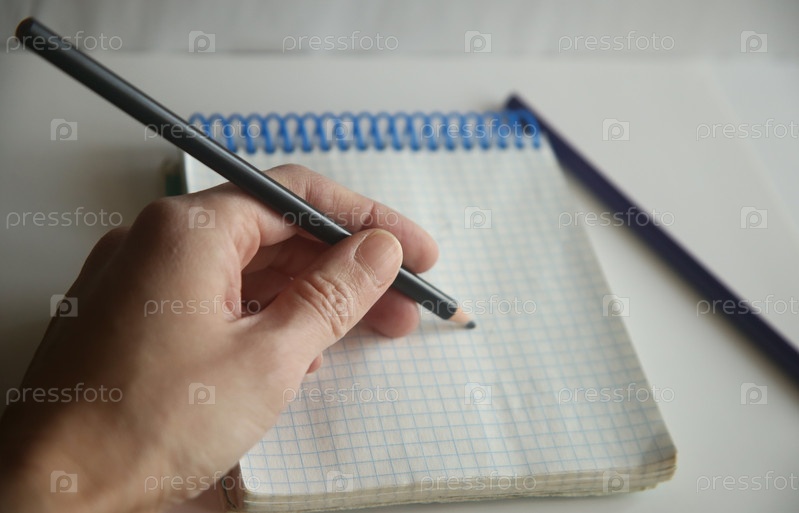 Женская рука пишет в блокноте карандашом левой рукой