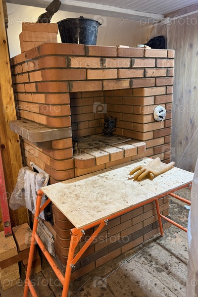 Строительство кирпичной плиты. Ниша для кухонного стола в ближайшем плане. Строительство древесной печи