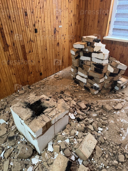 Демонтировать старую отопительную печь, разобрать дымоход