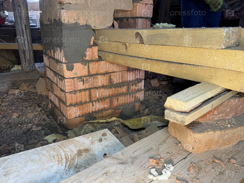 Комин, подтянутый на деревянных балках. кирпичная кладовая ниже комина была восстановлена. Близкий план