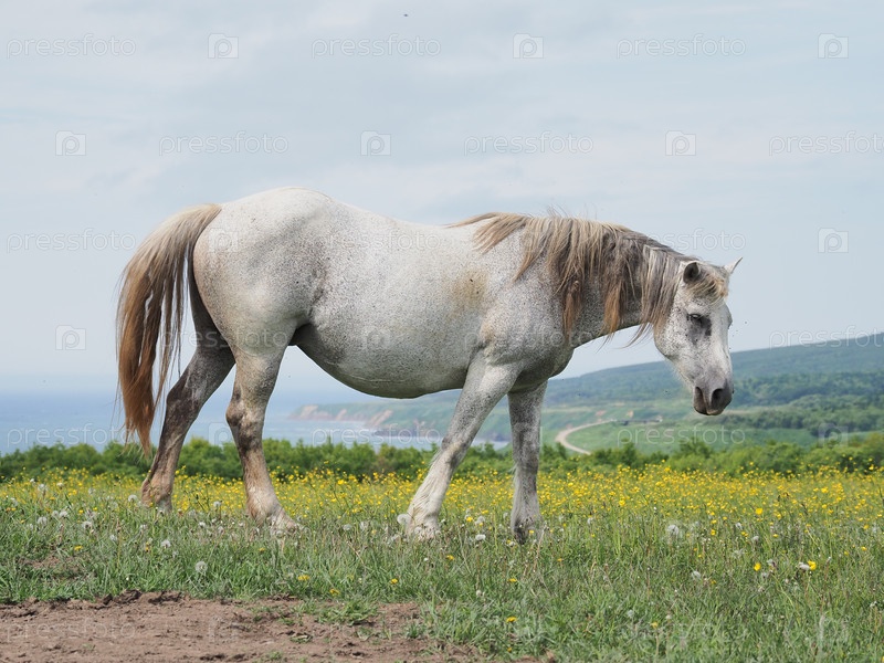 Лошади на пастбище. Кони в пастбище. Сахалин. Сахалин. (marka)