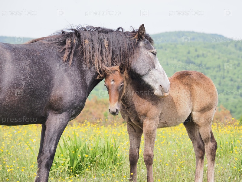 Лошади на пастбище. Кони в пастбище. Сахалин. Сахалин. (marka)