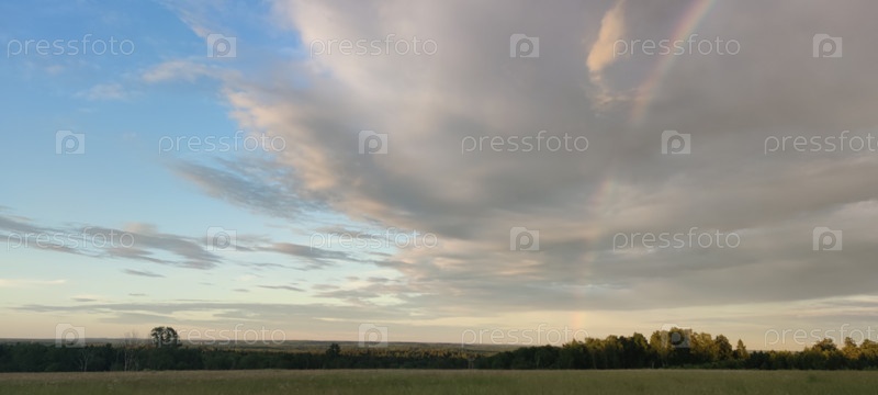 Постриженное поле под облаками