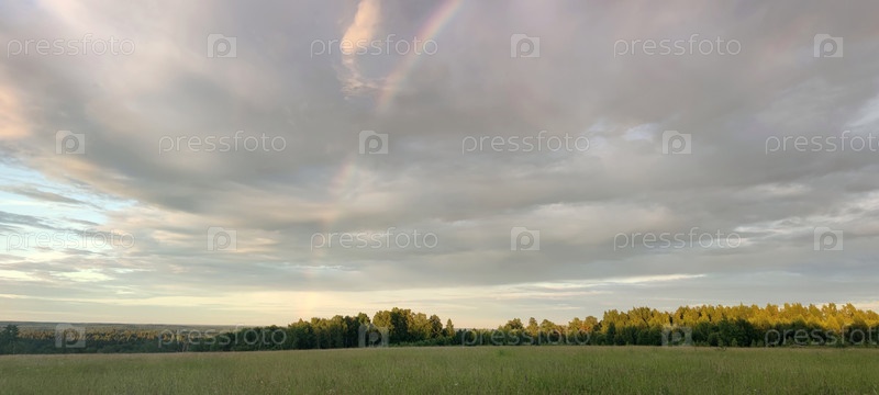 Постриженное поле под облаками